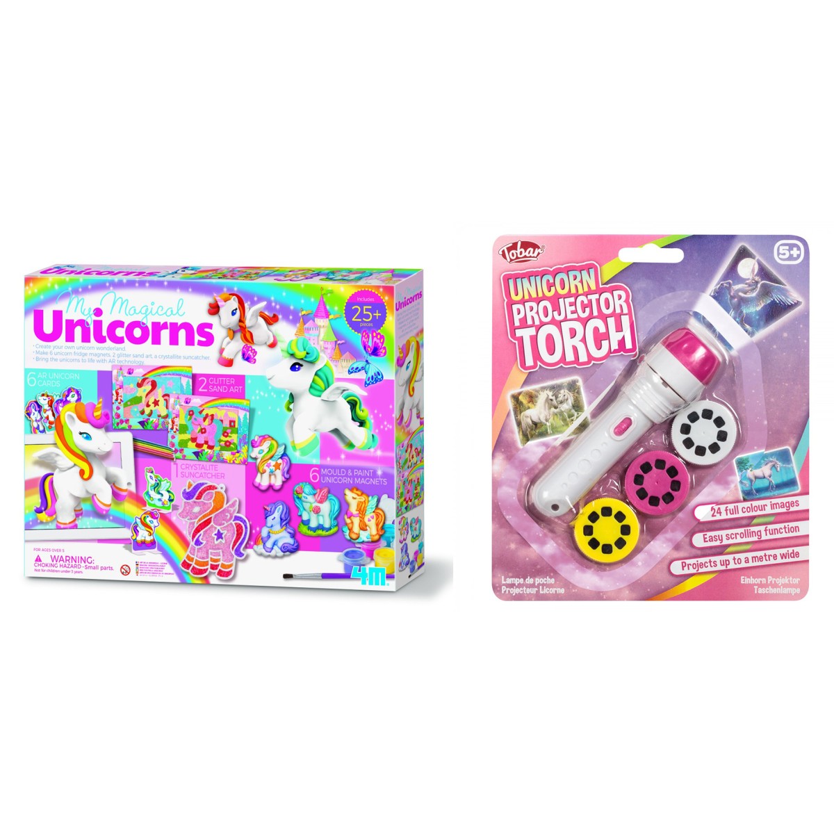 Μεταμόρφωσε το δωμάτιό σου σε μαγευτική χώρα μονόκερων με αυτόν τον φανταστικό προτζέκτορα-φακό που προβάλλει έγχρωμες τρισδιάστατες εικόνες μονόκερων σε οποιαδήποτε επιφάνεια. Τοποθέτησε έναν από τους 3 δίσκους στην ειδική σχισμή του προτζέκτορα-φακού, στρέψε τον προς τον τοίχο ή οποιαδήποτε άλλη επιφάνεια και δες τους πανέμορφους μονόκερους να ξεδιπλώνονται μπροστά στα μάτια σου! Κάθε δίσκος περιέχει 8 διαφορετικές έγχρωμες εικόνες με το αγαπημένο μυθικό πλάσμα. Συνολικά εμφανίζονται 24 εικόνες που προβάλλονται με καθαρότητα και ακρίβεια σε απόσταση περίπου 1 μέτρου, περιστρέψτε απλώς την κεφαλή του προτζέκτορα-φακού για καλύτερη εστίαση της εικόνας. Οι εικόνες είναι τόσο εντυπωσιακές και τρισδιάστατες που μπορείς να τις βλέπεις ξανά και ξανά χωρίς να βαριέσαι. Επίσης, μπορεί να χρησιμοποιηθεί και ως κανονικός φακός χωρίς την τοποθέτηση των δίσκων στην ειδική σχισμή. Ένα τέλειο, διασκεδαστικό και εκπαιδευτικό δώρο ιδανικό και για πιτζάμα πάρτι.