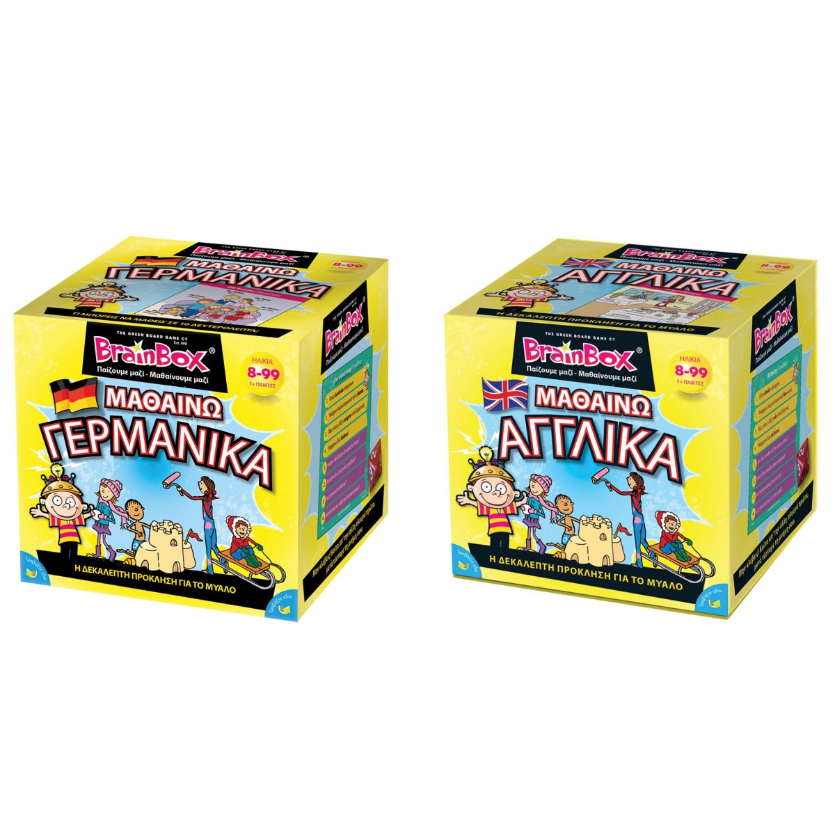 Η εκμάθηση των Γερμανικών είναι πολύ χρήσιμη καθώς οι ξένες γλώσσες αποτελούν πλέον σημαντικό κομμάτι της ζωής μας. Αυτό το BrainBox θα βελτιώσει την παρατηρητικότητα και τις μνημονικές ικανότητες των παιδιών, ενώ παράλληλα θα αναπτύξει το λεξιλόγιό τους στα Γερμανικά. Κάθε κάρτα δείχνει μία εικόνα με λέξεις στα Γερμανικά και τα Ελληνικά. Το πίσω μέρος της κάρτας έχει δύο επίπεδα ερωτήσεων, ένα για αρχάριους (επίπεδο Α1/Α2) και ένα για όσους έχουν μεγαλύτερη αυτοπεποίθηση. Αυτό το BrainBox είναι ένα διασκεδαστικό και πολύτιμο εργαλείο μάθησης. Es ist gut! Σκοπός του παιχνιδιού: Μάζεψε τις περισσότερες κάρτες μέσα σε 10 λεπτά. Περιέχονται: 54 κάρτες 2 κάρτες με κανόνες 1 κλεψύδρα 1 ζάρι