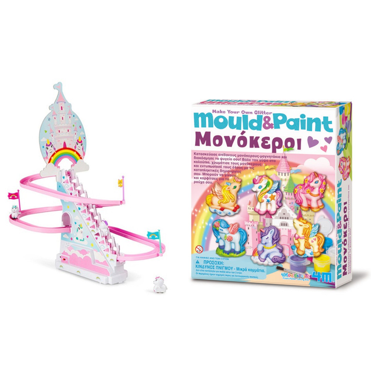 Τοποθέτησε τους μικρούς μονόκερους στη ροζ σκάλα και δες τους να την ανεβαίνουν, να περνούν κάτω από το ουράνιο τόξο και τσούπ να γλιστρούν ένας ένας στην στριφογυριστή ροζ τσουλήθρα τερματίζοντας στην αρχή της σκάλας έτοιμοι να το ξανακάνουν!