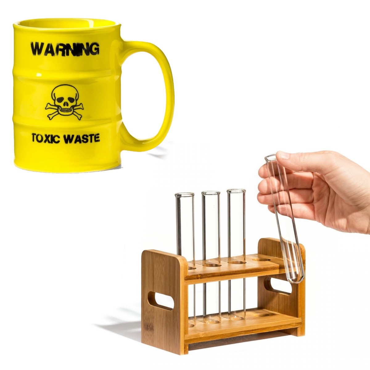 Ποιος τολμά να πιει από την κούπα που έχει το προειδοποιητικό σήμα για τοξικά απόβλητα και την αντίστοιχη προειδοποίηση με το κρανίο; Εσύ θα αποφασίσεις το περιεχόμενο που θα βάλεις στην κίτρινη κούπα, αλλά να ξέρεις όλοι θα σε κοιτούν με έκπληξη όταν τη χρησιμοποιείς!