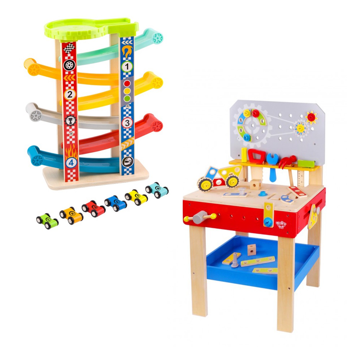 Τοποθέτησε τα αυτοκινητάκια σου στην πίστα και ο αγώνας ξεκινά! Ένα ξύλινο παιχνίδι δράσης και ταχύτητας σχεδιασμένο με τις πιο αυστηρές διεθνείς προδιαγραφές ασφάλειας παιχνιδιών. Το παιδί αναπτύσσει τις κινητικές ικανότητες και τη φαντασία του και παράλληλα μαθαίνει τα χρώματα και την αρίθμηση. Το σετ περιλαμβάνει την πίστα με τις πλαστικές ράγες και τα αυτοκινητάκια. Είναι κατάλληλο για παιδιά ηλικίας άνω των 18 μηνών. Διαστάσεις: 32Χ14Χ38 εκ.