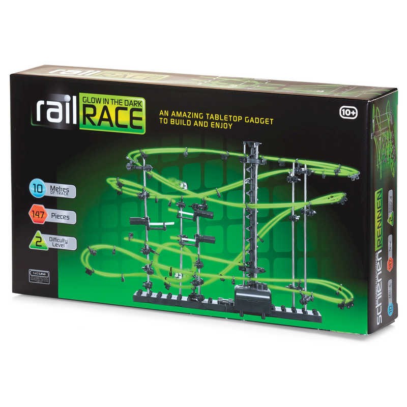 Συναρμολόγησε την πίστα, τοποθέτησε τους βόλους στις κατάλληλες θέσεις και η διασκέδαση ξεκινά! Δες τους βόλους να κινούνται και να στροβιλίζονται γρήγορα ανάμεσα στους φωσφορούχους και δαιδαλώδεις διαδρόμους της πίστας μήκους 10 μέτρων. Να μπαινοβγαίνουν στον ειδικό ανελκυστήρα που τους οδηγεί στα διαφορετικά επίπεδα των διαδρόμων. Το σετ αποτελείται από 147 τεμάχια και είναι κατάλληλο για παιδιά άνω των 10 ετών. Περιέχονται οδηγίες συναρμολόγησης.
