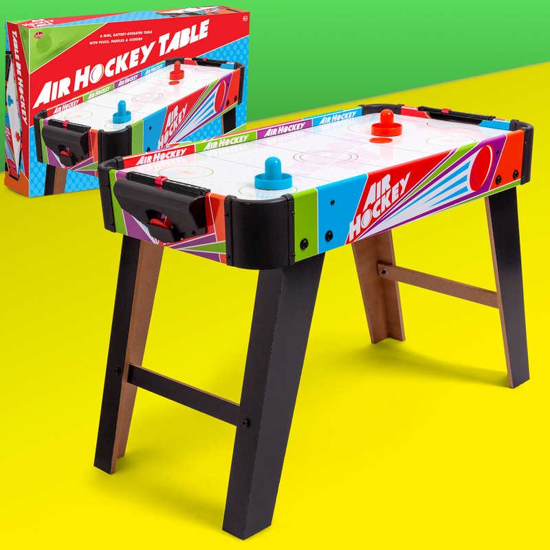 Η συσκευασία περιέχει έναν δίσκο και δύο μπαστούνια. Ανοίξτε τον διακόπτη που βρίσκεται στο κάτω μέρος του ταμπλό. Αμέσως, στο ταμπλό δημιουργείται ένα στρώμα αέρα που επιτρέπει στον δίσκο να μετακινείται ελεύθερα και να γλιστράει σε όλη την επιφάνεια του ταμπλό. Οι παίκτες κρατούν από ένα μπαστούνι και προσπαθούν να βάλουν γκολ στο τέρμα του αντιπάλου τους.