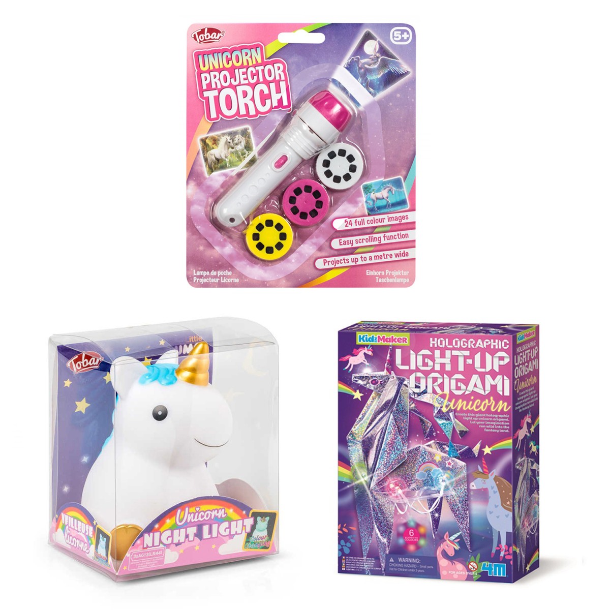 Μεταμόρφωσε το δωμάτιό σου σε μαγευτική χώρα μονόκερων με αυτόν τον φανταστικό προτζέκτορα-φακό που προβάλλει έγχρωμες τρισδιάστατες εικόνες μονόκερων σε οποιαδήποτε επιφάνεια. Τοποθέτησε έναν από τους 3 δίσκους στην ειδική σχισμή του προτζέκτορα-φακού, στρέψε τον προς τον τοίχο ή οποιαδήποτε άλλη επιφάνεια και δες τους πανέμορφους μονόκερους να ξεδιπλώνονται μπροστά στα μάτια σου! Κάθε δίσκος περιέχει 8 διαφορετικές έγχρωμες εικόνες με το αγαπημένο μυθικό πλάσμα. Συνολικά εμφανίζονται 24 εικόνες που προβάλλονται με καθαρότητα και ακρίβεια σε απόσταση περίπου 1 μέτρου, περιστρέψτε απλώς την κεφαλή του προτζέκτορα-φακού για καλύτερη εστίαση της εικόνας. Οι εικόνες είναι τόσο εντυπωσιακές και τρισδιάστατες που μπορείς να τις βλέπεις ξανά και ξανά χωρίς να βαριέσαι. Επίσης, μπορεί να χρησιμοποιηθεί και ως κανονικός φακός χωρίς την τοποθέτηση των δίσκων στην ειδική σχισμή. Ένα τέλειο, διασκεδαστικό και εκπαιδευτικό δώρο ιδανικό και για πιτζάμα πάρτι.