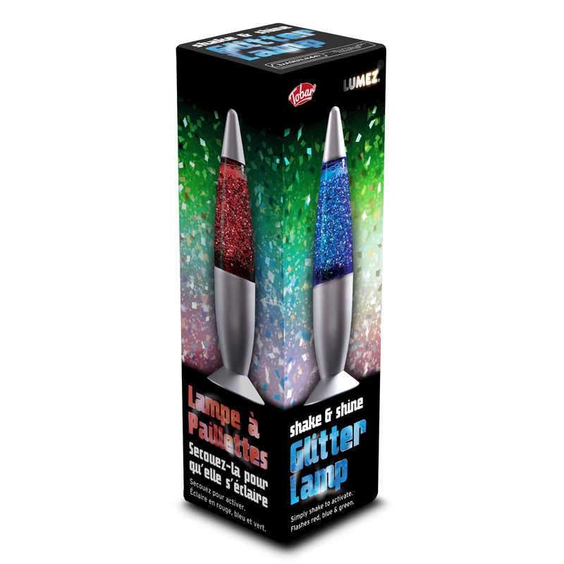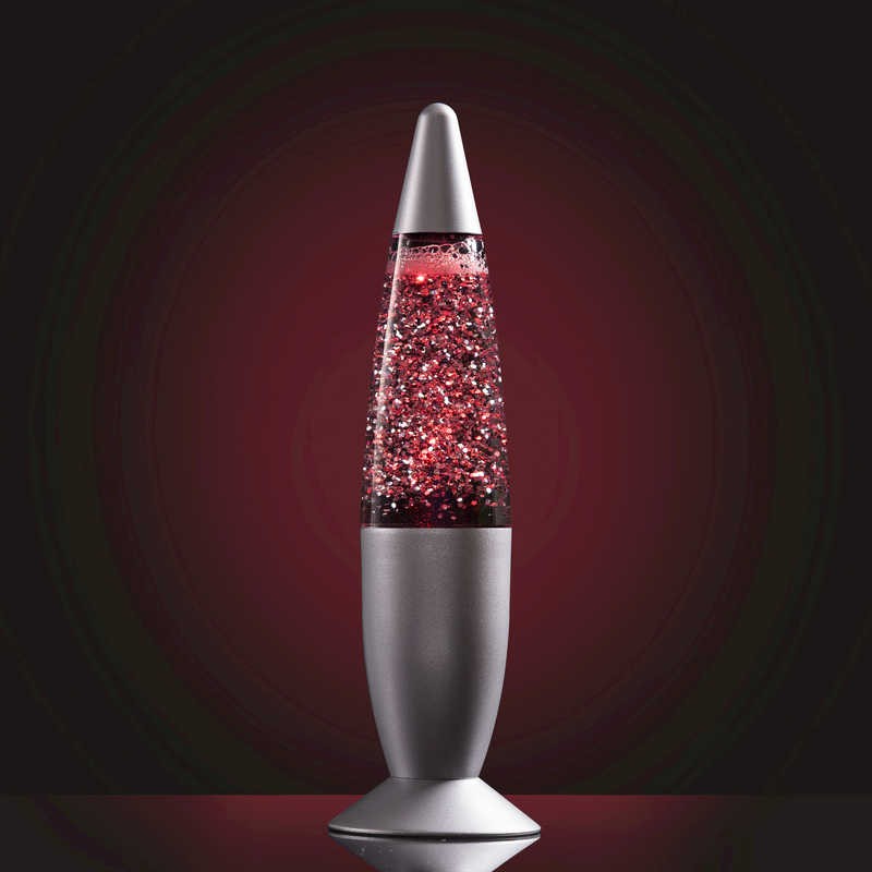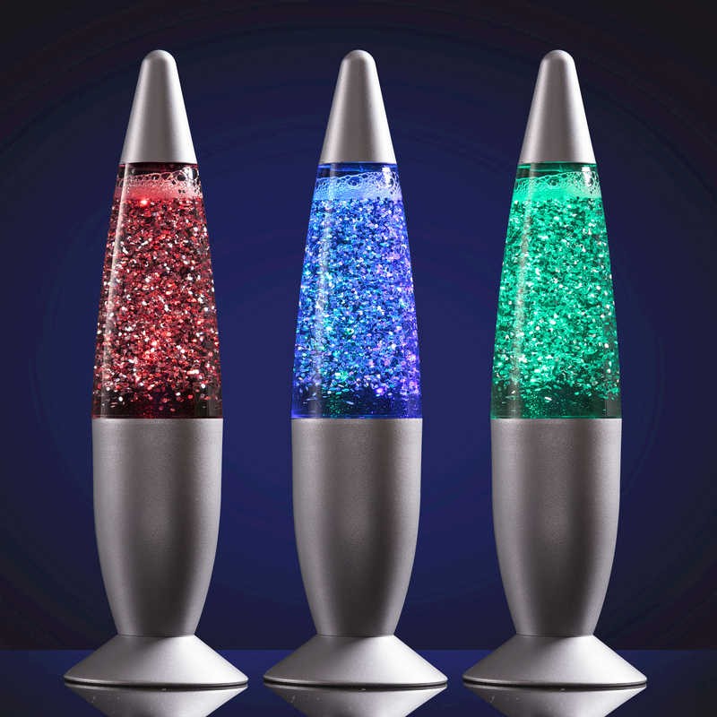 Ανακινήστε τη λάμπα και δείτε την να αλλάζει χρώματα σε κόκκινο, μπλε και πράσινο και να φωτίζει τον χώρο σας. Το εσωτερικό της περιέχει διάφανο υγρό με γκλίτερ.
