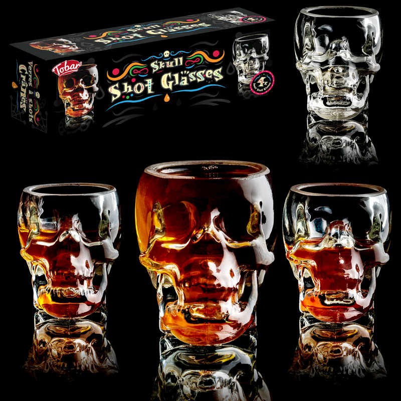 Ένας ιδιαίτερος τρόπος σερβιρίσματος ποτού για τους λάτρεις του είδους. Κατάπληξε τους φίλους σου και σέρβιρέ το αγαπημένο τους ποτό. Τσιν-τσιν! Μπορεί να συνδυαστεί και με το δοχείο σερβιρίσματος - Νεκροκεφαλή. Το σετ αποτελείται από 4 σφηνοπότηρα 50ml το καθένα.