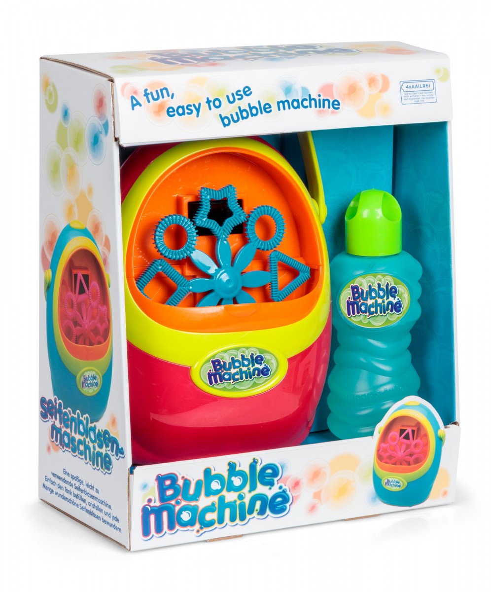 Η μηχανή για σαπουνόφουσκες είναι ένας φιλικός τρόπος παραγωγής σαπουνόφουσκας που χαρίζει ατέλειωτη χαρά και γέλιο σε μικρούς και μεγάλους. Το προϊόν λειτουργεί με μπαταρία και δημιουργεί αυτόματα τις σαπουνόφουσκες, απλά προσθέστε λίγο από το υγρό για σαπουνόφουσκες (συμπεριλαμβάνεται), ενεργοποιήστε τον διακόπτη και δείτε χιλιάδες σαπουνόφουσκες να εκτοξεύονται στον αέρα! Οι όμορφες και χρωματιστές φυσαλίδες θα καταπλήξουν τα παιδιά που θα τρέξουν να τις σκάσουν. Ένα εξαιρετικό προϊόν για τα πάρτι, το μπάνιο ή τη διασκέδαση το καλοκαίρι. Είναι εύκολο στη χρήση και από μικρά παιδιά και μπορεί να μεταφερθεί εύκολα οπουδήποτε. Τηρεί όλα τα πρότυπα ασφαλούς ποιότητας σε αντίθεση με τα περισσότερα μηχανήματα για την παραγωγή φυσαλίδων κι έχει σχεδιαστεί για να είναι φιλικό προς τα παιδιά.