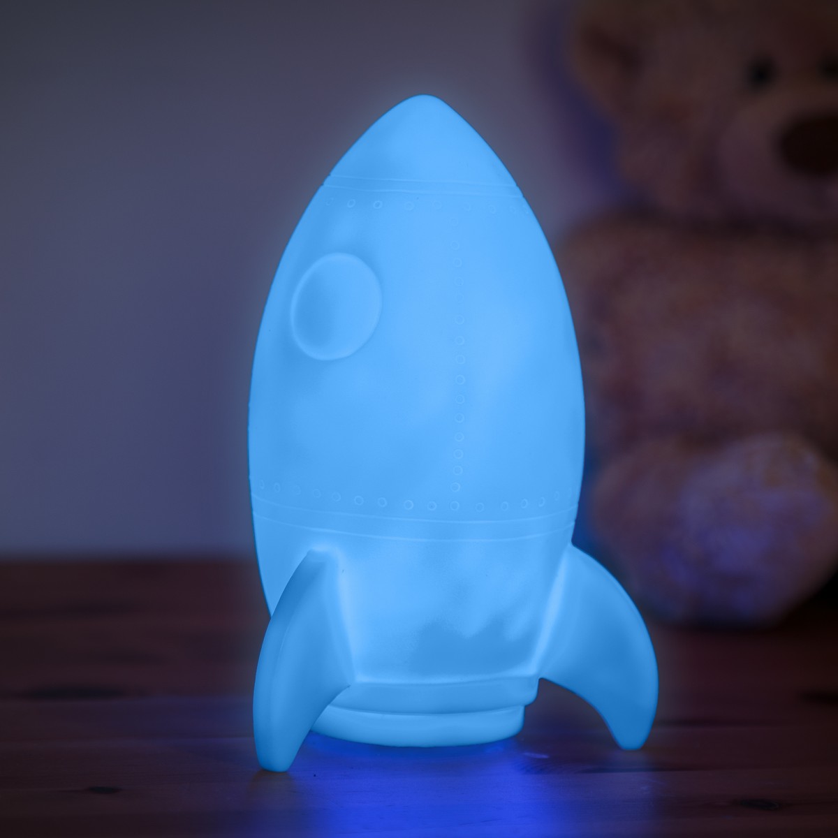 Εμπνευσμένο από τον κόσμο του διαστήματος, αυτό το επιτραπέζιο φωτάκι νυκτός, που προσομοιάζει με πύραυλο, θα χαρίσει διαστημικές νύχτες στα μικρά σας αγγελούδια! Το φως του αλλάζει χρώματα ενώ παράλληλα διαχέεται στον χώρο δημιουργώντας μια ατμόσφαιρα χαλάρωσης, ηρεμίας και ύπνου. Ύψος προϊόντος: 15 εκ.