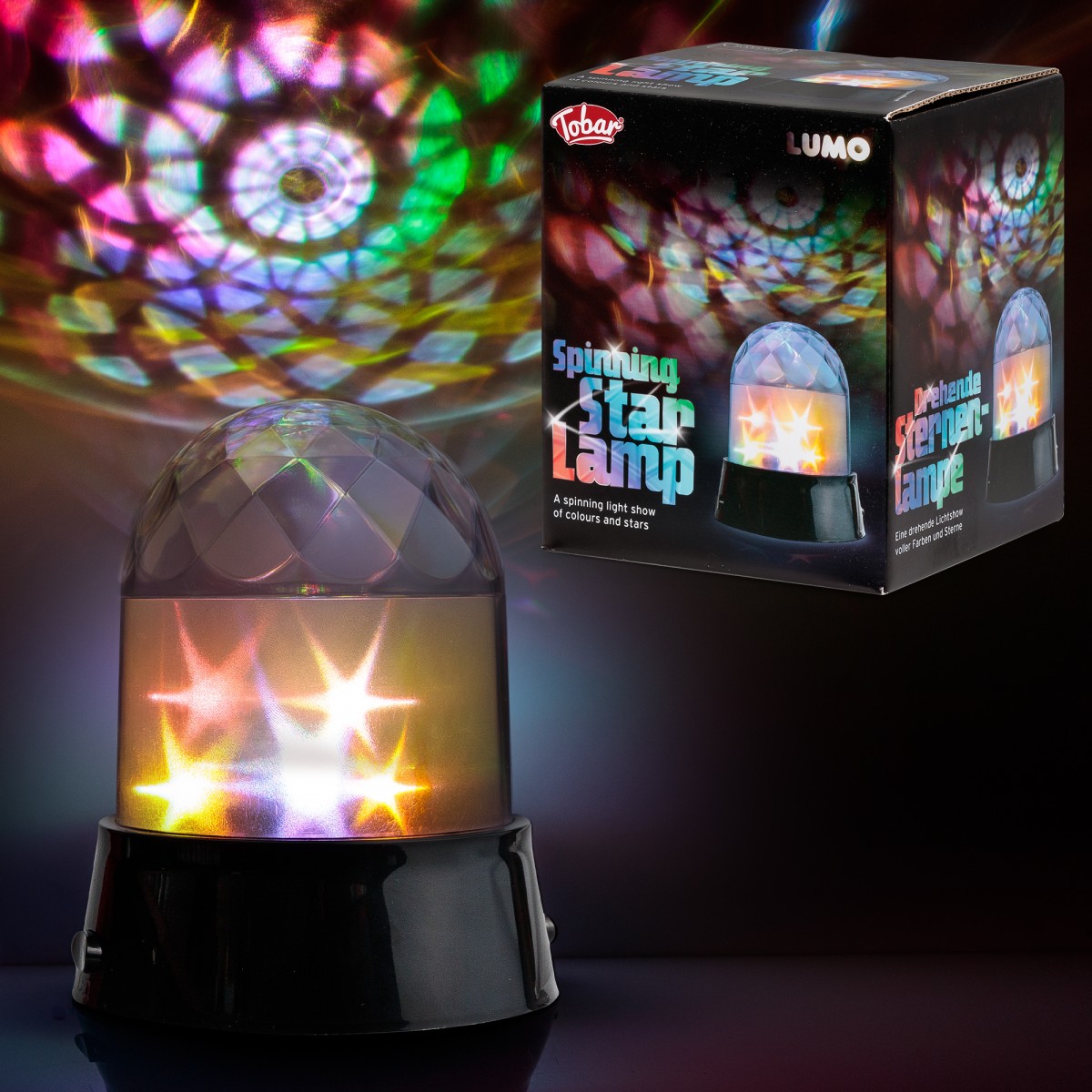 Το πολύχρωμο φωτιστικό είναι ιδανικό για στιγμές χαλάρωσης αλλά και ως διακοσμητικό φωτιστικό χώρου προβάλλοντας τα σχέδια των φωτεινών αστεριών στον χώρο σας. Πατώντας το κουμπί ενεργοποίησης, οι λυχνίες LED αναβοσβήνουν εντός της λάμπας και παράλληλα το σώμα της περιστρέφεται αργά έτσι ώστε τα πολύχρωμα μοτίβα αστεριών που προβάλλονται να περιστρέφονται στον χώρο.