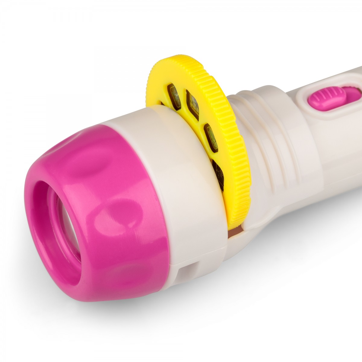 Μεταμόρφωσε το δωμάτιό σου σε μαγευτική χώρα μονόκερων με αυτόν τον φανταστικό προτζέκτορα-φακό που προβάλλει έγχρωμες τρισδιάστατες εικόνες μονόκερων σε οποιαδήποτε επιφάνεια. Τοποθέτησε έναν από τους 3 δίσκους στην ειδική σχισμή του προτζέκτορα-φακού, στρέψε τον προς τον τοίχο ή οποιαδήποτε άλλη επιφάνεια και δες τους πανέμορφους μονόκερους να ξεδιπλώνονται μπροστά στα μάτια σου! Κάθε δίσκος περιέχει 8 διαφορετικές έγχρωμες εικόνες με το αγαπημένο μυθικό πλάσμα. Συνολικά εμφανίζονται 24 εικόνες που προβάλλονται με καθαρότητα και ακρίβεια σε απόσταση περίπου 1 μέτρου, περιστρέψτε απλώς την κεφαλή του προτζέκτορα-φακού για καλύτερη εστίαση της εικόνας. Οι εικόνες είναι τόσο εντυπωσιακές και τρισδιάστατες που μπορείς να τις βλέπεις ξανά και ξανά χωρίς να βαριέσαι. Επίσης, μπορεί να χρησιμοποιηθεί και ως κανονικός φακός χωρίς την τοποθέτηση των δίσκων στην ειδική σχισμή. Ένα τέλειο, διασκεδαστικό και εκπαιδευτικό δώρο ιδανικό και για πιτζάμα πάρτι.