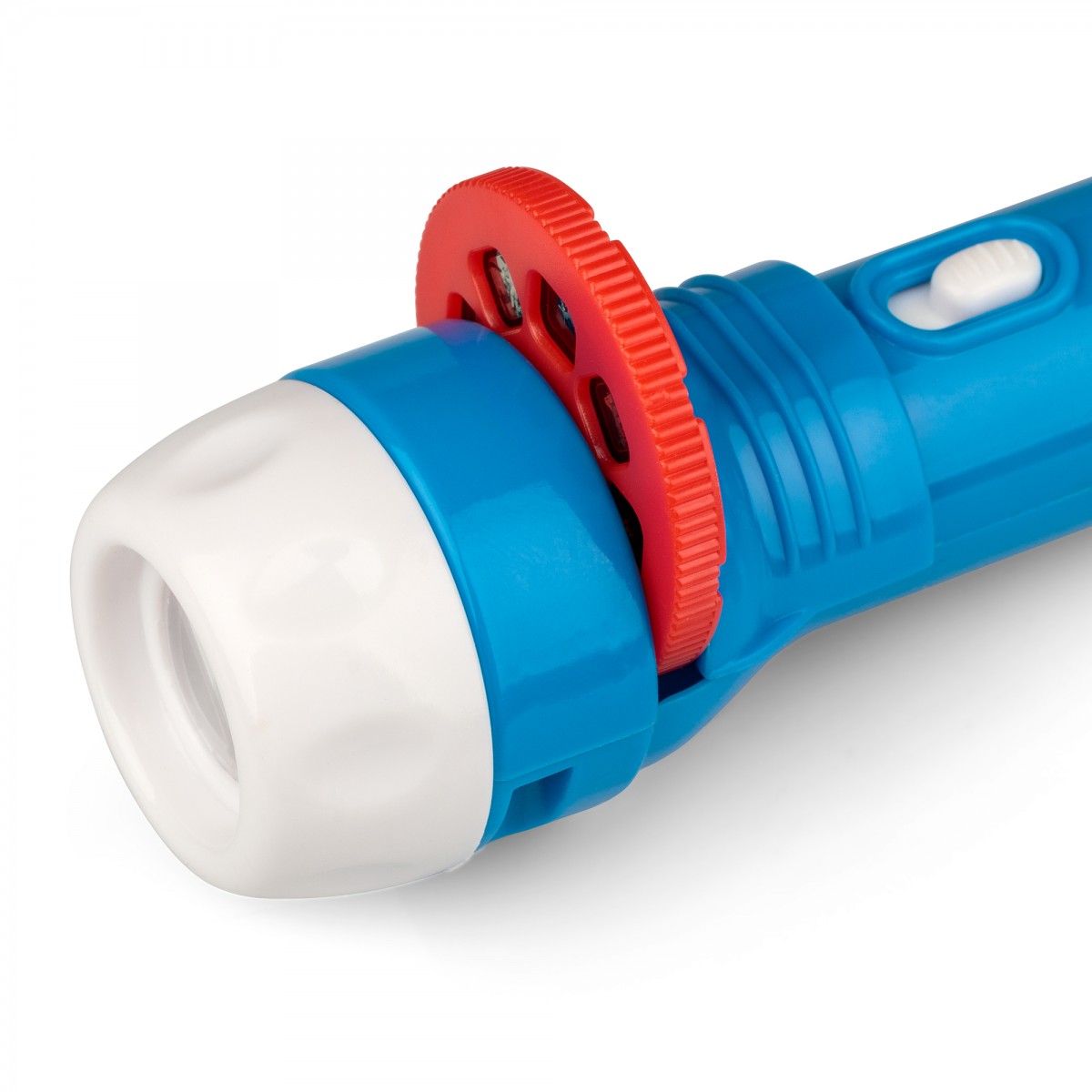 Μεταμόρφωσε το δωμάτιό σου πλανητικό σύστημα και ταξίδεψε στο διάστημα με αυτόν τον φανταστικό προτζέκτορα-φακό που προβάλλει έγχρωμες και τρισδιάστατες εικόνες του διαστήματος σε οποιαδήποτε επιφάνεια. Τοποθέτησε έναν από τους 3 δίσκους στην ειδική σχισμή του προτζέκτορα-φακού, στρέψε τον προς τον τοίχο ή οποιαδήποτε άλλη επιφάνεια και δες τον όμορφο κόσμο του διαστήματος να ξεδιπλώνεται μπροστά στα μάτια σου! Κάθε δίσκος περιέχει 8 διαφορετικές έγχρωμες εικόνες με πλανήτες, διαστημόπλοια, αστροναύτες και πολλά ακόμη. Συνολικά εμφανίζονται 24 εικόνες που προβάλλονται με καθαρότητα και ακρίβεια σε απόσταση περίπου 1 μέτρου, περιστρέψτε απλώς την κεφαλή του προτζέκτορα-φακού για καλύτερη εστίαση της εικόνας. Οι εικόνες είναι τόσο εντυπωσιακές και τρισδιάστατες που μπορείς να τις βλέπεις ξανά και ξανά χωρίς να βαριέσαι. Επίσης, μπορεί να χρησιμοποιηθεί και ως κανονικός φακός χωρίς την τοποθέτηση των δίσκων στην ειδική σχισμή. Ένα τέλειο, διασκεδαστικό και εκπαιδευτικό δώρο ιδανικό για μικρούς και μεγάλους.