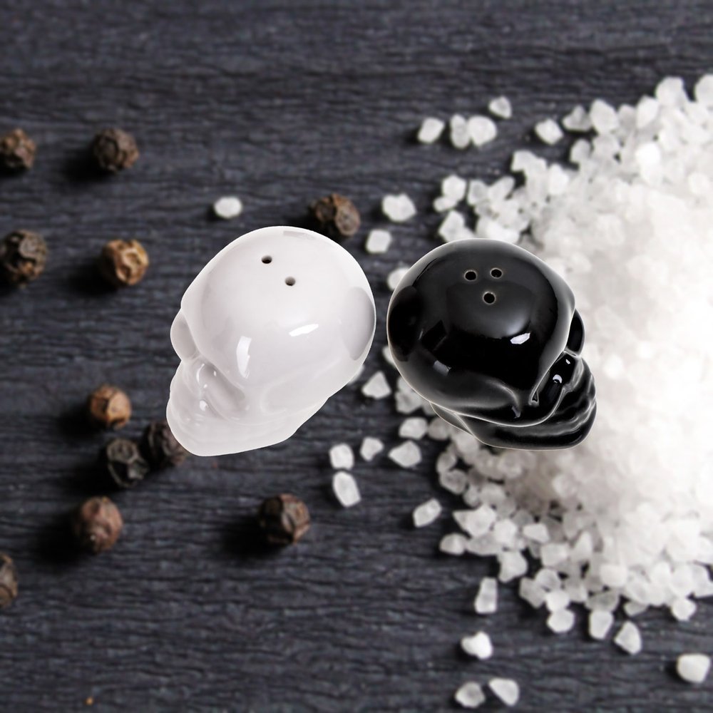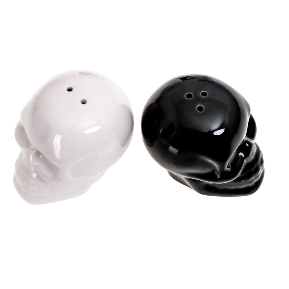 Ξέχνα την κλασική αλατιέρα και πιπεριέρα. Βάλε αλάτι και πιπέρι όχι μόνο στο τραπέζι, αλλά και στη ζωή σου! Το σετ αλατοπίπερο σε σχήμα νεκροκεφαλής έρχεται να προκαλέσει ρίγη τρόμου και θαυμασμού, και να συμπληρώσει με ιδιαίτερο τρόπο τα καθημερινά χρηστικά σου αντικείμενα.